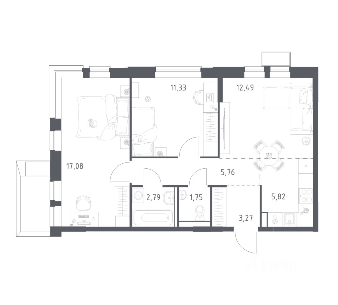 Строим кварталы для жизни с заботой о будущем. Предлагается 2-комнатная квартира комфорт-класса площадью 60,29 кв.м в корпусе 3.3 на 7-м этаже, в жилом комплексе ''Егорово Парк''.