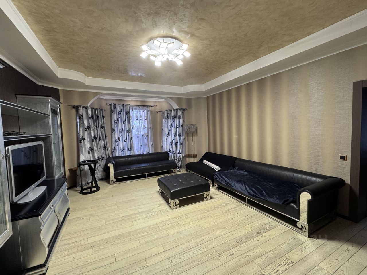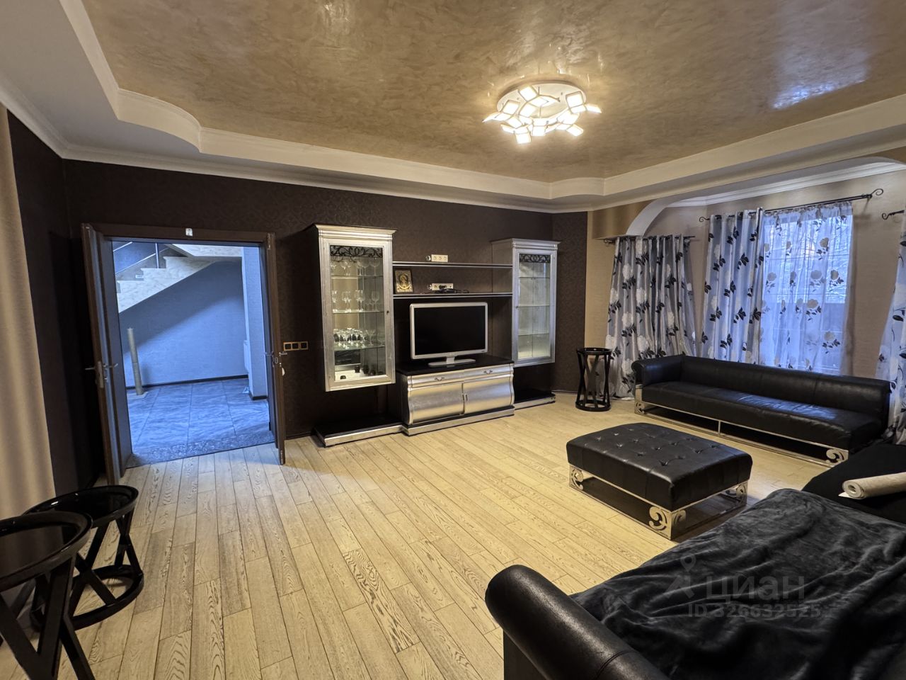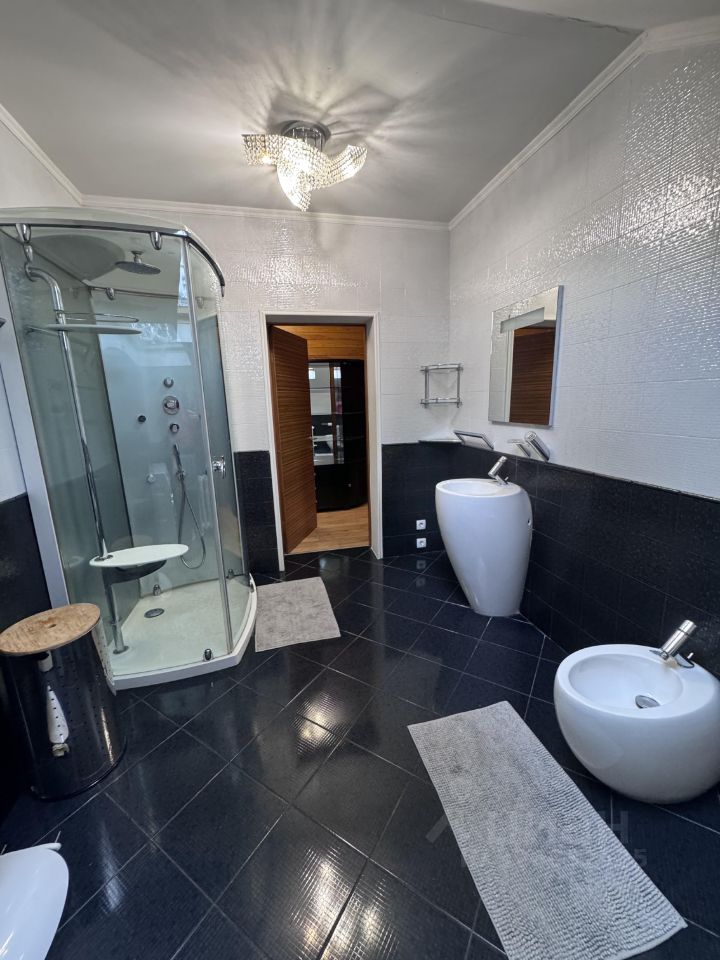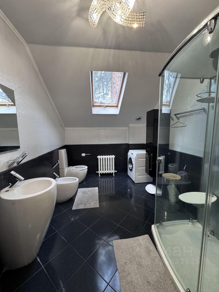 В доме два этажа, первый этаж: гостиная, кабинет, спальня, санузел, кухня, коридор, холл. Второй этаж: три спальни, санузел, большой балкон, гардеробная.