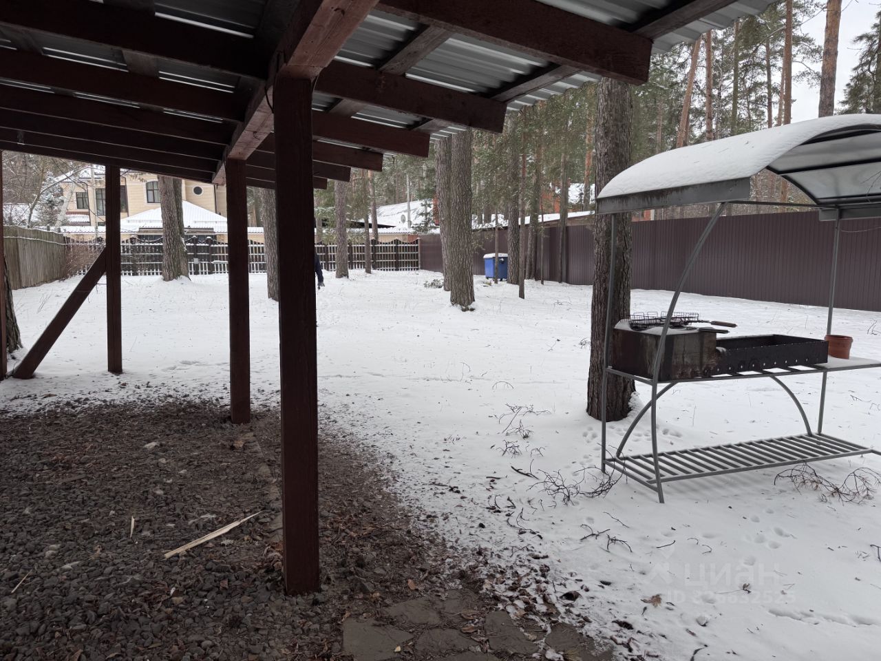 Участок прямоугольный, правильной формы, с вековыми соснами, на участке есть навес и большая мангальная зона.