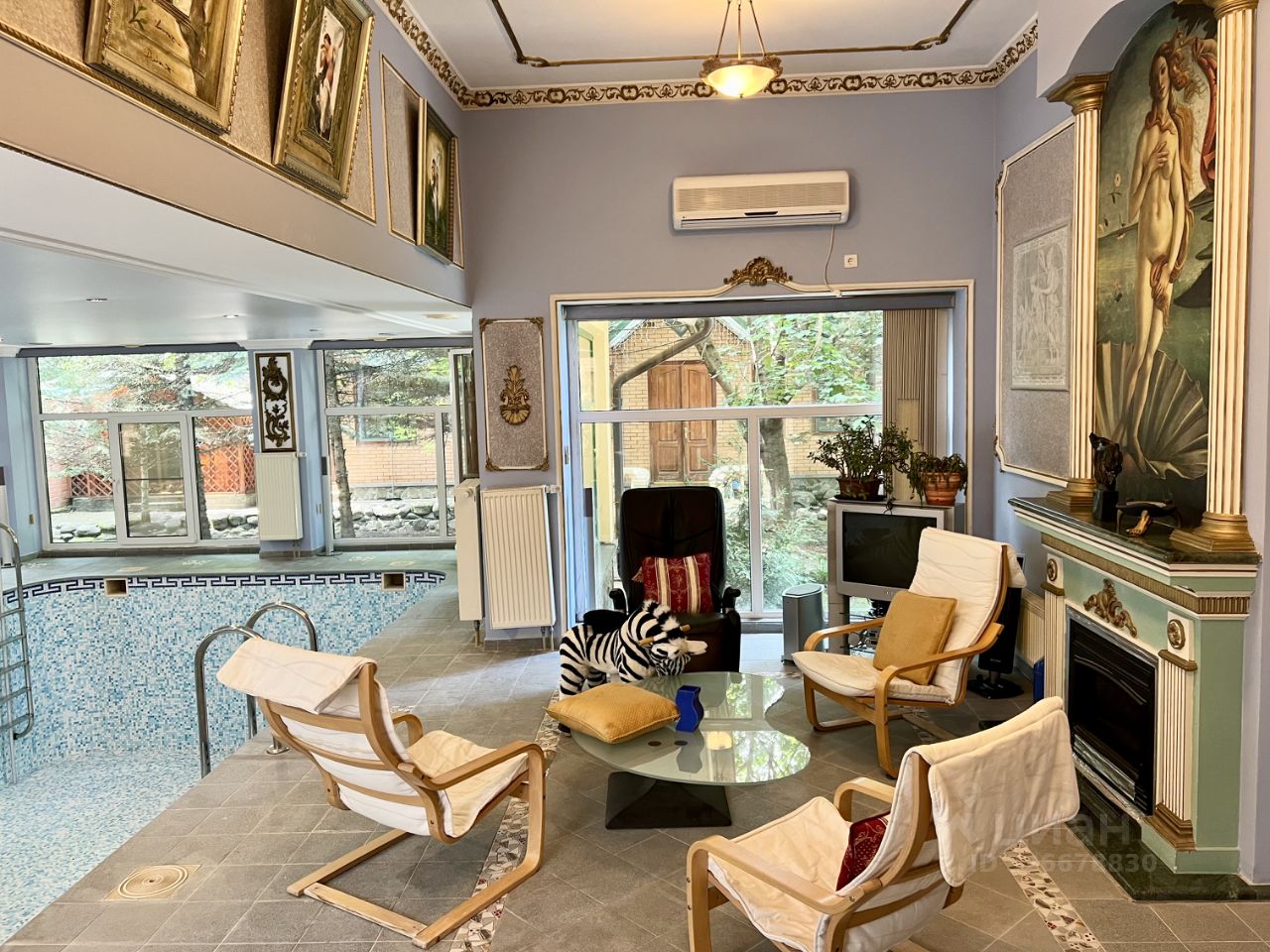 На просторном живописном участке дополнительно расположены: дом для персонала(3 комнаты, кухня, санузел), беседка-барбекю, парковка на 4 автомобиля, пруд, выполнены ландшафтные работы.