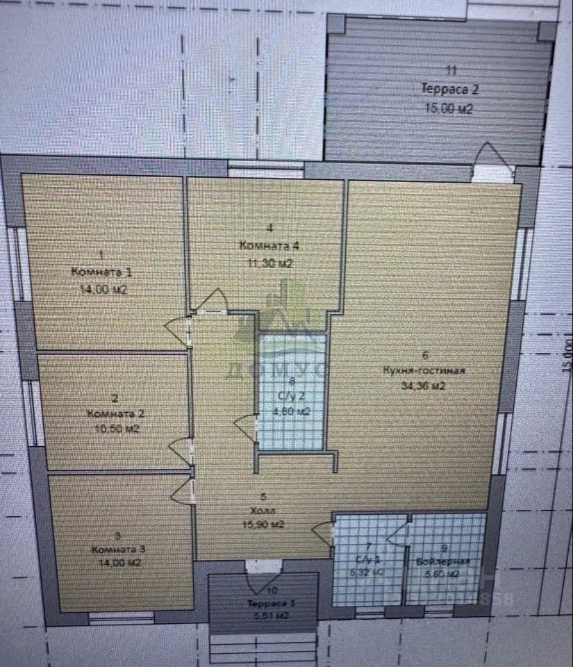 Дом с хорошей планирвокой, 3 спальни 11,3 кв.м. + 14 кв.м. + 10,5 кв.м. 2 с\у, котельная, просторная кухня гостинная 30 кв.м. с выходом на терассу 15 кв.м.