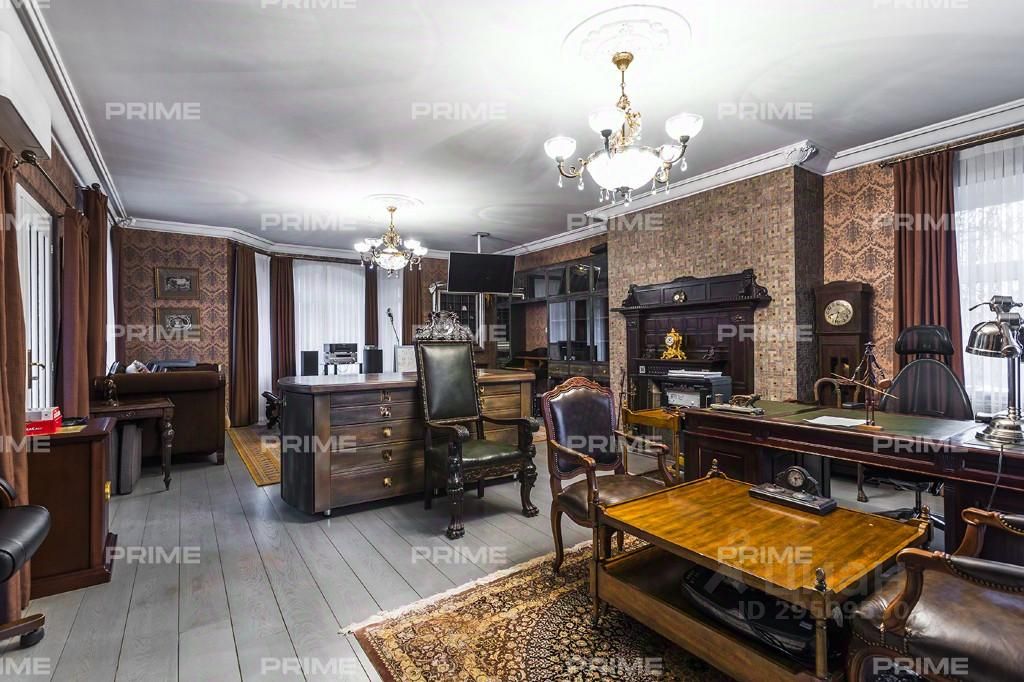 Дом предлагает премиальную отделку ''Под ключ'' с мебелью на трех этажах, включая 4 спальни, просторную гостиную с кухней и столовой, а также кабинет. В дополнение к основному дому, имеются дополнительные постройки, такие как СПА-комплекс с кинотеатром, хамамом, дровяной баней и бассейном, а также дом для персонала и гараж на 4 автомобиля в контуре дома.