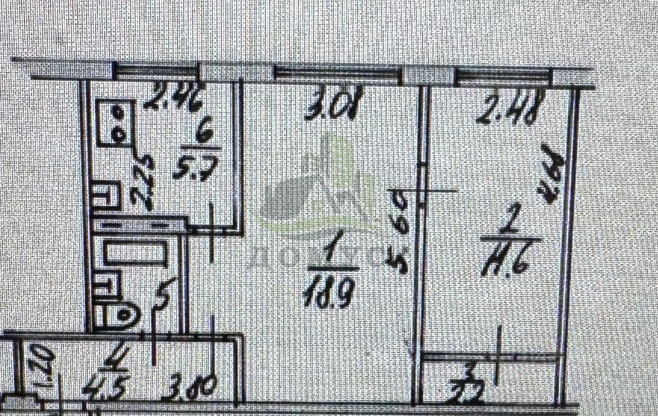 1/5 дома. общая площадь квартиры 45,8 кв.м. комнат смежные 18+12 кв.м. кухня 6 кв.м. с/у совещенный. без балкона.